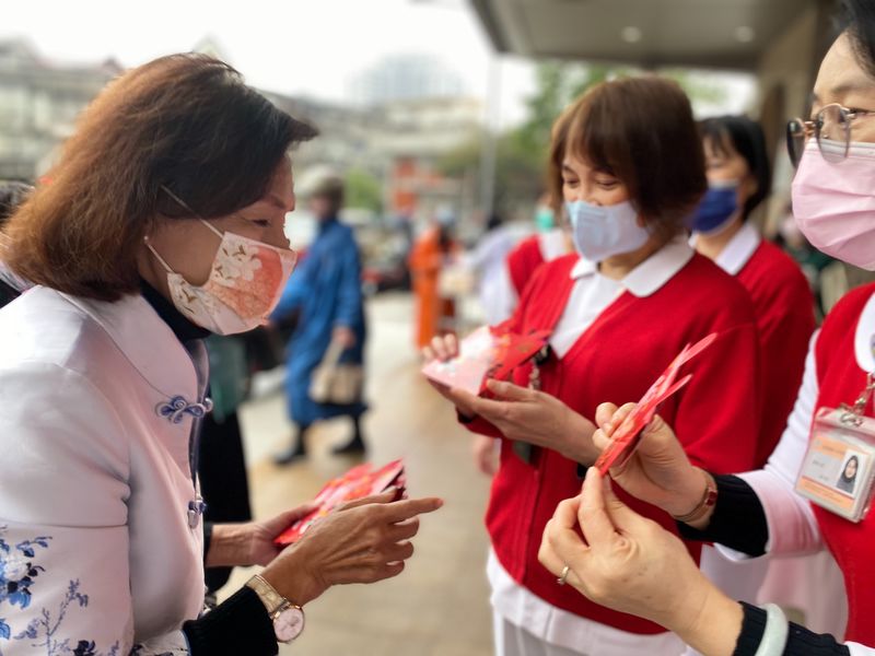 縣長(左) 發紅包給醫護人員