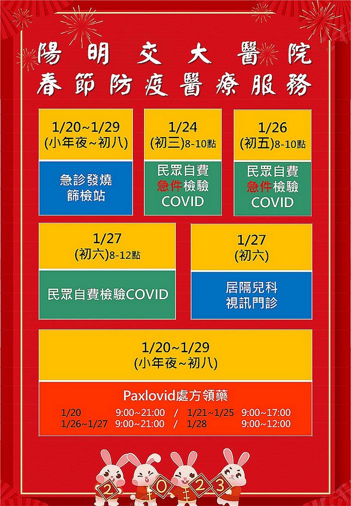 國立陽明交通大學附設醫院為服務宜蘭鄉親,農曆春節除了提供「春節門診服務」,也另行規劃了「春節防疫醫療服務」,提供有需求民眾可多加利用。