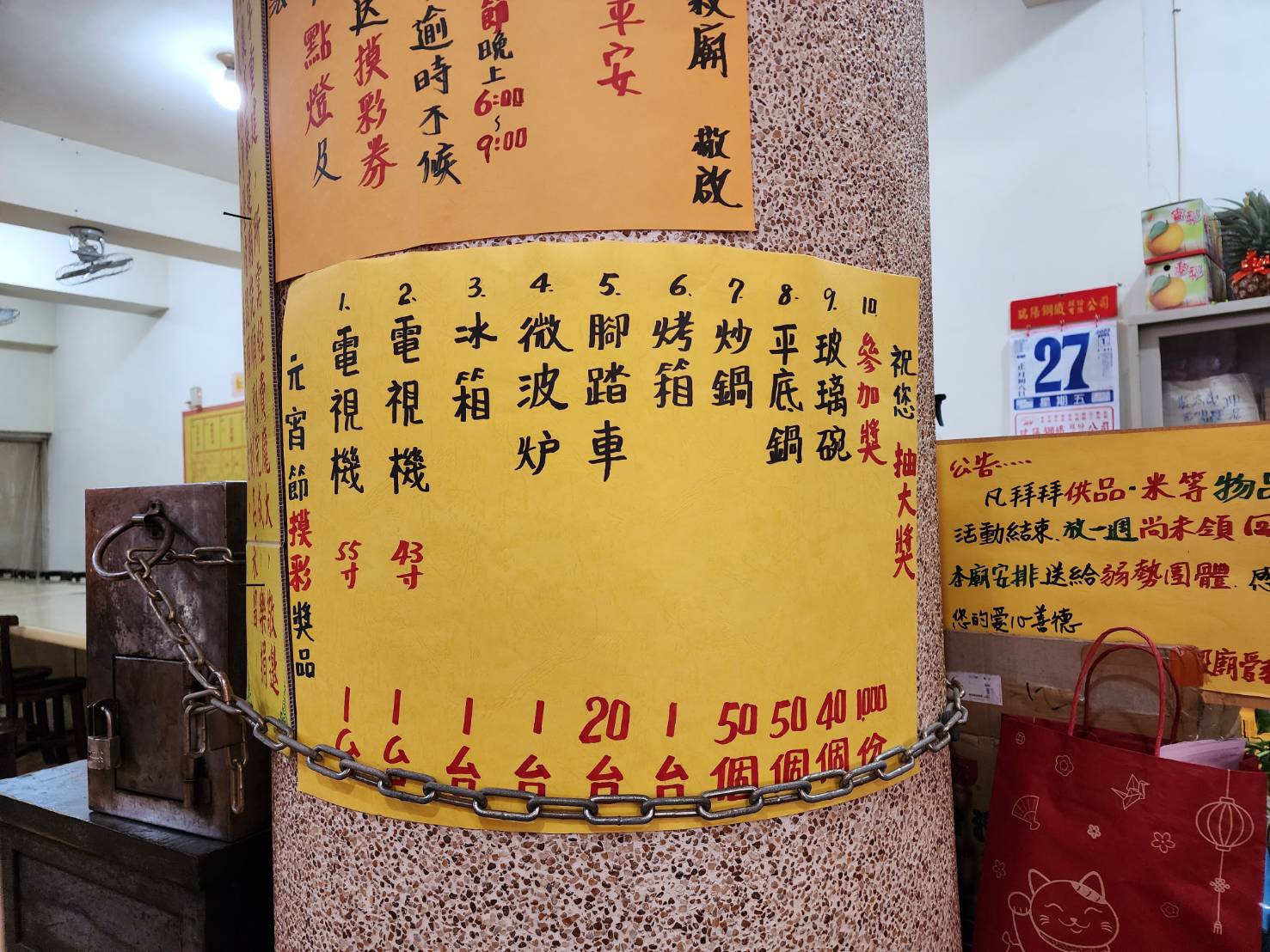 五榖廟方表示,現場摸彩品繁多=力中獎者經主持人唱名3次,未持存根聯上台領獎者,視同棄權論重抽,參加者不得異議。