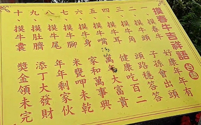 五穀廟主委林明昌說,五穀廟祭祀神農大帝,除了有鞭春牛,還有「摸」春牛祈福習俗,摸牛的不同部位代表不同意義,各有順口吉祥話(台語),歡迎大家來摸春牛~