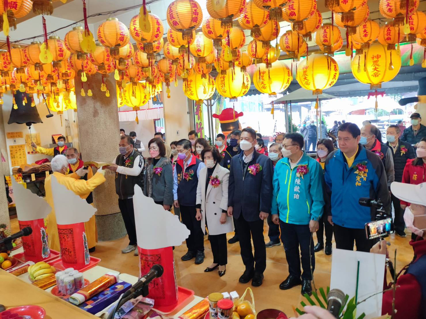 宜蘭五穀廟今天上午九時許舉辦宗教科儀祭拜禮式,首先由舞獅團開場,由獅子分送喜糖給來賓,接著由縣長林姿妙、議長張勝德、市長陳美玲、立委陳歐珀、五榖廟主委林明昌等,向神農大帝祈求風調雨順、國泰民安。