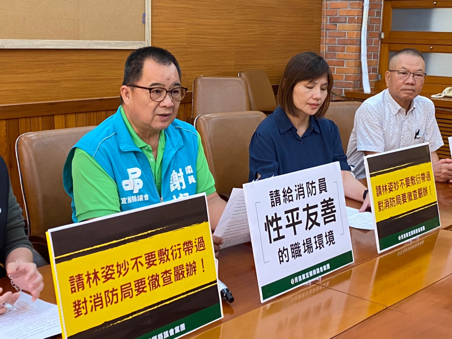 宜蘭縣議會民進黨團今(8)日召開記者會~批宜蘭縣消防局對性平事件敷衍了事,忽略基層消防員身心問題,更呼籲林姿妙縣長嚴加徹查,別再放任體制內人員一犯再犯,讓縣府轄下機關變成性平地獄,應儘快有明確作為,才能確實消弭性騷事件。