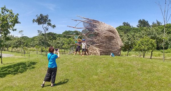 希望從鳥的視角出發,讓人們在壯圍用不同角度的探索及欣賞。另在遊客中心室內的作品有來自花蓮擅長再生媒材創作的藝術家吳娟、林俊德+高惟維、趙俊寶、莊勝鐘+吳暐如等4組藝術家帶來一系列以再生媒材製作的燈飾作品,導入環境永續的重要性並給予親子環境教育的議題,透過作品呈現垃圾也可以變黃金。這次藝術家們以在地文化的根基與生活脈動,透過藝術創作呈現,作品於壯圍沙丘生態園區及周邊,民眾能夠漫步欣賞。