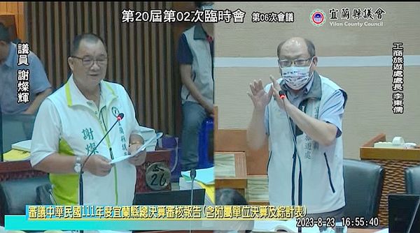 陳鴻禧 議員:我們拖了幾年都沒去做,處長我行我素、自以為是,審計室主任該怎麼辦?處長現在說還可以游泳潛水,主任要不要配置救生員?處長就是不承認他不對,冬山河可以游泳潛水我一直覺得很納悶,縣府的公告大家都看得很清楚,如果說「筆誤」寫錯了,就沒事了,卻要硬拗。