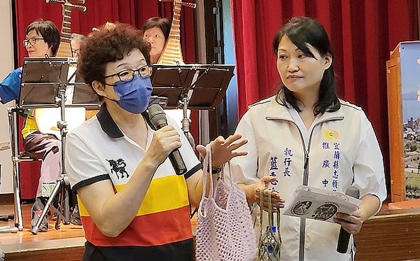 各社區志工分別上台簡述 他們參與志工的經過,李秋美說,她參加鴻毅志工隊,各鄉鎮市都有隊員,發現道路有坑洞時,隊員即利用晴天出動修補,她並向頭城鎮長說,頭城鎮的道路太好了,沒有給他們服務的機會;黃玉燕表示,她在文化大學唸書時就開始當志工,教社區歌唱,讀經班等;今年78 歲的蕭順德,今天早上和56位隊員一起清掃四十甲基地,然後去游泳1000公尺,再趕來開會,人活著就要動;林焄煐說, 她在社區教鉤針,鉤些實用物品,千里姻緣一線牽,她用鉤針陪伴別人,陪伴是一件美好的事;林章光和呂齡齡是夫妻檔,林章光在生命線服務很多年,呂齡齡手很巧, 將廢棄不用的紙杯、鋁罐、毛巾、廣告紙等,都能編成實用的物品,可作兔子、帽子、杯子、扇子、龍船……。