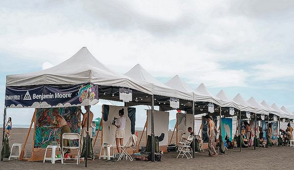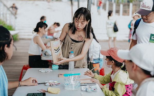 還有充滿海濱文化的羽毛木板畫DIY、亮亮天天畫畫玩印章、螢光彩繪等,透過動手創作,感受藝術節慶般的熱鬧感,創造與東北角深度連結的獨特回憶。活動從午後一路進行到夜晚,現場10位現場彩繪(Live Painting)藝術家,以東北角的景色為題發揮,運用各自擅長的風格揮灑創意。