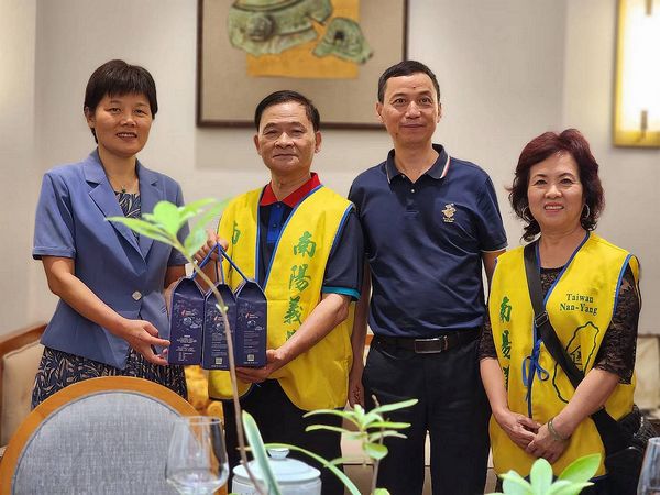 圖/左起:上虞区委常委蔡建红、南陽義學校長林獻忠、台辦副主任陳紅波、義學班主任陳英蘭
