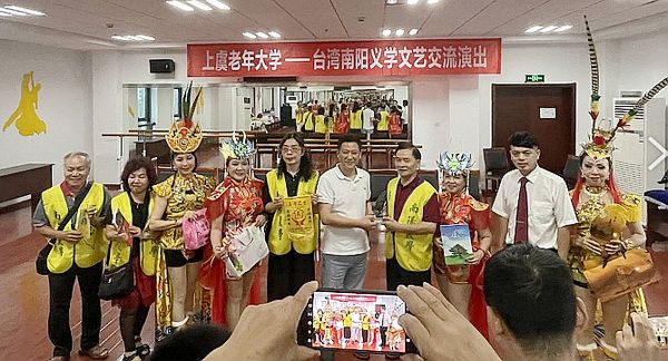 在上虞台辦陳紅波的見證下,双方簽訂締結姐妹校合約,高齢89歲的孝德文化研究會顧問謝企韓,贈送學校的圖書給南陽義學校長。林献忠校長也回贈學校刊物;隨後在禮堂舉辦双方文化藝術交流表演。