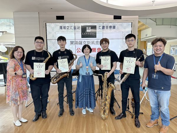 國立陽明交通大學附設醫院大廳~響起了優美的樂音,原來是蘭陽薩克斯風重奏團於蒞臨陽明交大醫院演出,該團是宜蘭在地青年籌組的樂團,帶著音樂的執著與回饋社會的信念,透過重奏團多元音色吹奏出迷人的樂曲,讓前來就醫的民眾駐足聆聽,仿佛置身另一時空,跳脫醫院冷冰冰的形象,瞬間舒緩了許多就診者的緊張情緒,讓身心靈都獲得了照護。