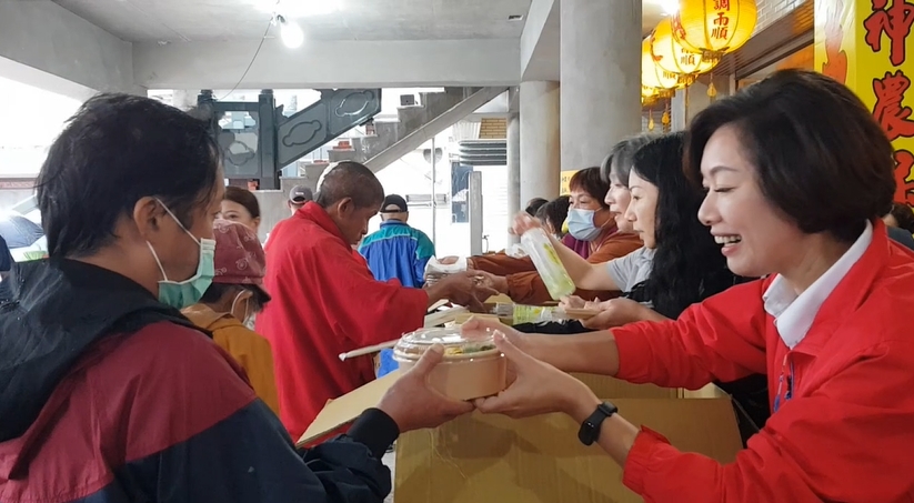今天立委參選人黃琤婷也到會場分送便當,她的心情是~透過大家的愛心,讓所有的人都能吃一頓飽、吃一頓熱食,真的很 感謝 這些愛心協會的工作人員,能夠發起這樣的愛心活動,接下來她們每個月都會有一天,來發放愛心便當,希望大家都能穿暖暖、吃飽飽。