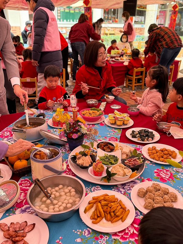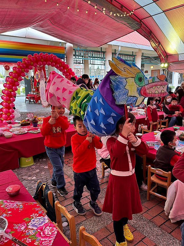 市長陳美玲表示,每年春節前夕,宜蘭市立幼兒園都會舉辦傳統習俗活動,今年透過幼兒主題課程的成果演出,展現歡樂有趣的兒童劇,結合一家一菜全園大圍爐活動,感受和樂融融的幸福感,祝福市民朋友龍年闔家平安、事事「龍」順利。