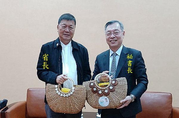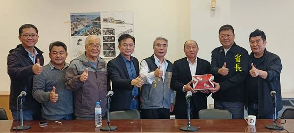 省長等一行於今天下午14時許到達縣府, 縣長林姿妙、副縣長林茂盛、農業處長李新泰、縣農會理事長李竹村、總幹事陳誌銘、蘇澳區漁會理事長蔡源龍、總幹事陳春生等,一起在會議室接待貴賓,相互交流。