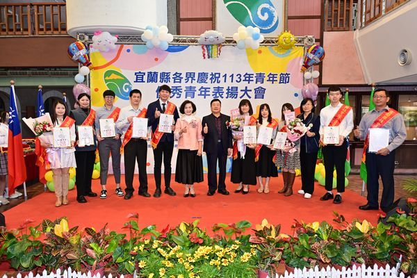 「宜蘭縣各界慶祝113年青年節表揚大會」於今(22)日在縣府縣民大廳舉行,獲獎者包含多位社會青年及青年學子,現場貴賓雲集,由林姿妙縣長、張勝德議長及救國團宜蘭縣團委會許財清主任委員共同主持頒獎,上百人到場觀禮見證,十分熱鬧,並將由宜蘭縣中華烹飪藝術大師-馮炫傑先生擔任宜蘭縣優秀青年代表,與全國各縣市代表一同接受公開表揚。