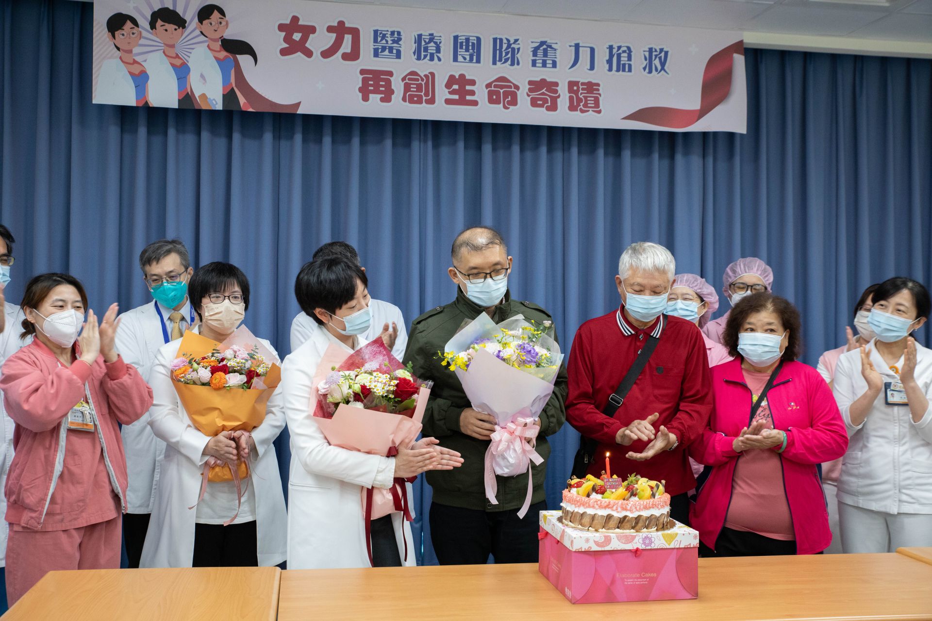 圖/陽明交大醫院準備了「博得新生」的蛋糕,一起慶祝游先生重啟人生