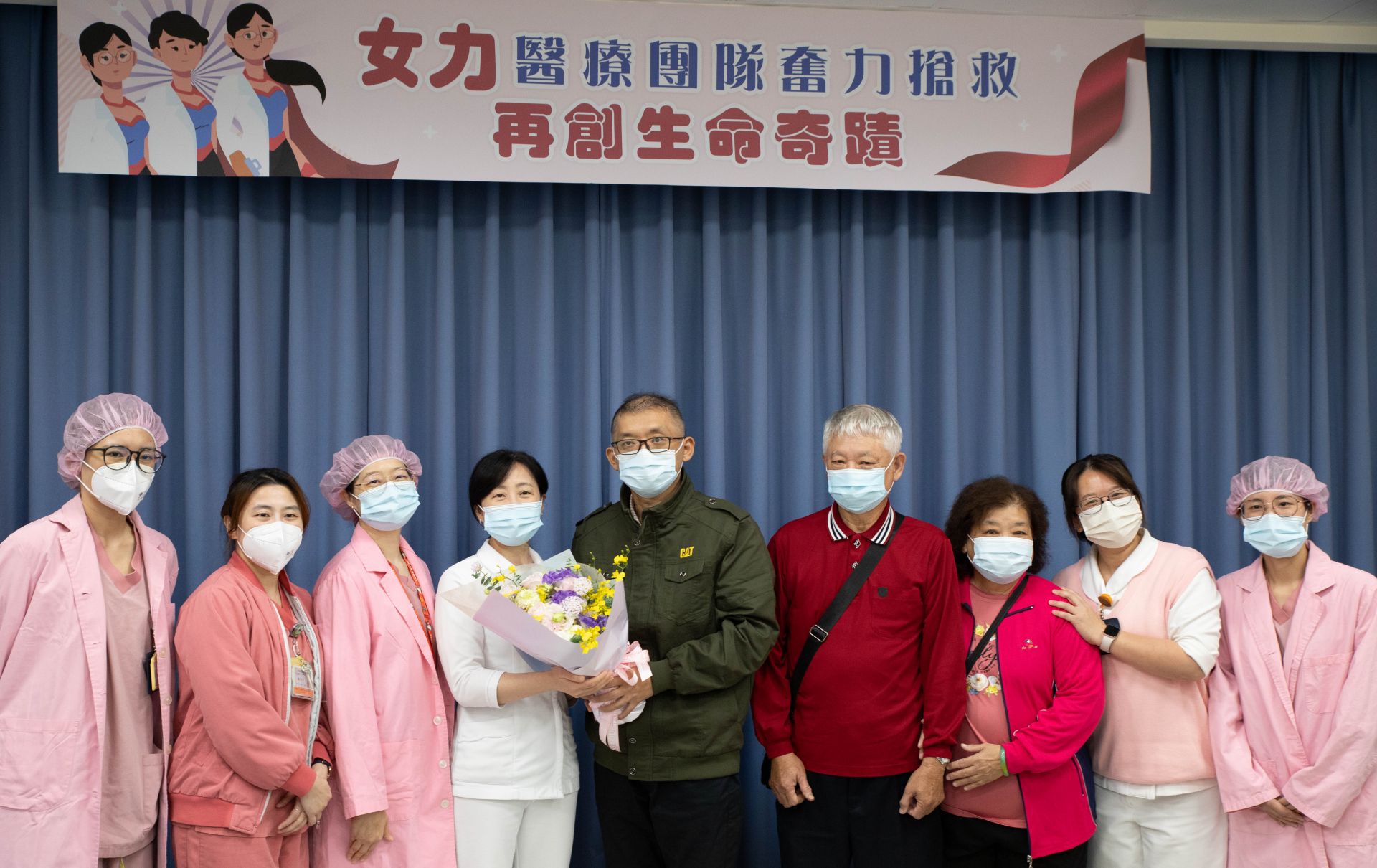 住院期間,家人和醫護團隊一直陪伴在游先生的身邊,從沒放棄希望。一個多月臥床下來,體重從原本的100多公斤降到60餘公斤不到,全身肌肉大量流失,為了幫助他脫離呼吸器,也安排在加護病房做復健,但挑戰未因此停歇,在拔管的最後一哩路出現了大量血便,立即由直腸外科林艿律醫師接手,用大腸鏡找到在直腸的出血點進行止血,藉以穩定生命徵象,歷經這麼多的病情轉折,游先生開始恢復經口飲食,陸續停掉升壓劑、移除呼吸器,並順利拔掉兩側胸部引流管,逐步邁向康復出院之路。