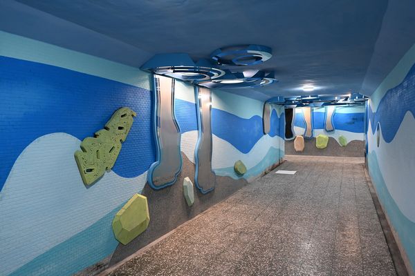 礁溪國小行人地下道是提供學童及民眾穿越之用,由於年代久遠、既有設施老舊,縣府藉藉著整修的機會,將地下道及兩側出入口作為公共藝術創作地點,以美化礁溪國小地下停車場,提升整體空間環境品質。