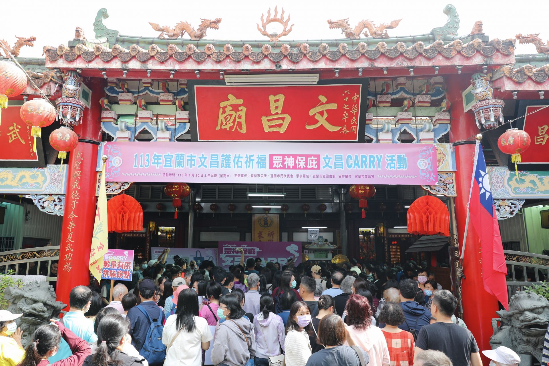 考試季將近,宜蘭市公所今(20)日上午9點於宜蘭市文昌宮舉辦「宜蘭市113年文昌護佑祈福」,市公所準備「祈福籃」獻祝,包含象徵「勤學」的芹菜、象徵「聰明」的蔥、象徵「有勝算」的蒜等供品,透過傳統祈福儀式向「文昌帝君、魁斗星君、朱熹夫子」祈求眾神保庇、考生考運亨通。今年市公所以「眾神保庇‧文昌CARRY」為主題,貼心準備了限量的「文昌護佑祈福禮」為考生加油打氣,宣傳一出詢問度破表,大受好評!一大清早就吸引許多考生前來排隊。