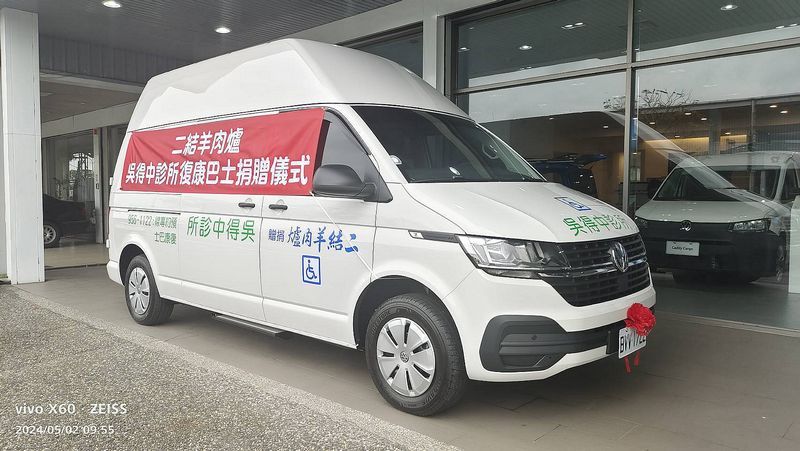 醫師公會理事長林旺枝和吳得中 醫師,對羊肉爐老闆簡浩伍、老闆娘李宛晏夫婦,兩人樂善好施、樂於幫助他人的行為甚表欽佩,由於今天的復康巴士是購買福斯汽車,今天的捐贈儀式就在福斯汽車公司舉辦。