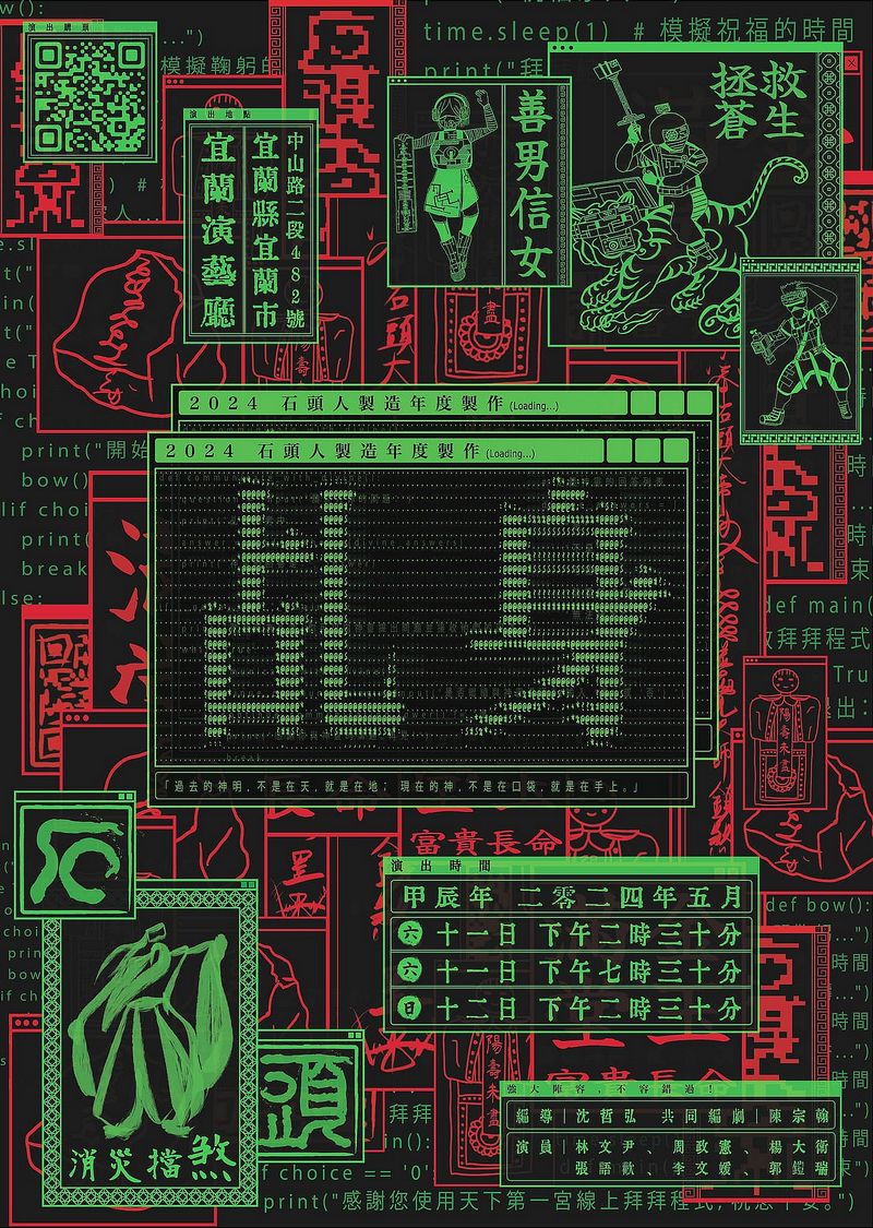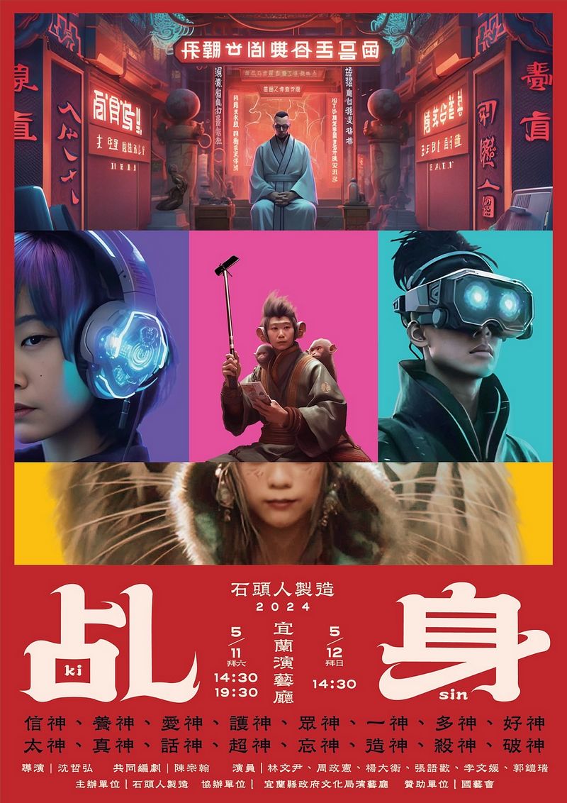 「石頭人製造劇團」以「乩身文化」與「流量亂象」為題材,編創具有傳統文化色彩、帶著熱血、武打及笑鬧的奇幻舞臺劇~《乩身》,5月11及12日將在宜蘭演藝廳登臺演出!此次特別規劃限量的 5折青年席次,歡迎青年朋友們熱烈搶購。