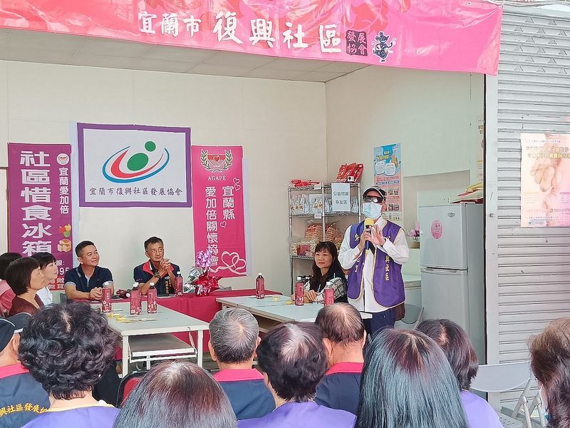 宜蘭市復興社區團體,在羅基萬理事長及核心幹部與志工在3個月前討論後,決定要善用地理優勢在宜蘭大學門口的正對面,籌備一處食物冰箱服務據點,歷經3個月的籌備,終於在今天早上10點,辦理啟用茶會,也期盼這個據點可以真正造福社區內的清寒家庭及需要食物援助與減壓的學生。