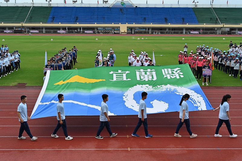 宜蘭縣運動會今(1)日上午8時30分在宜蘭運動公園田徑場辦理,並由林姿妙縣長親自主持,典禮開場表演由蘭陽森巴藝術舞團「夏豔森巴」熱情有勁舞蹈表演為大會揭開序幕,接著是各鄉鎮市代表隊進場,