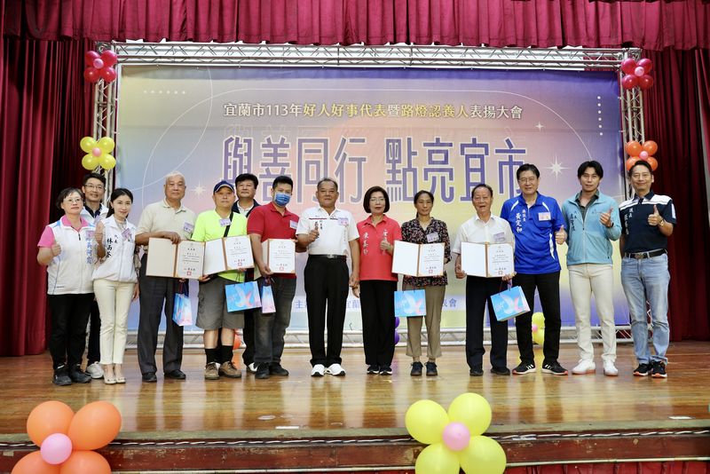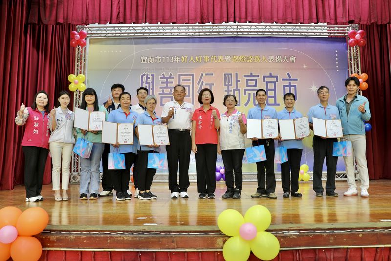 宜蘭市公所今(29)日舉辦~「113年好人好事代表暨路燈認養人」表揚大會,市長陳美玲親自表揚來自里辦公處推薦的34位好人好事代表及237位路燈認養人,好人好事與善同行、路燈認養點亮宜市,期許未來更多正能量加入善的行列,讓社會更加溫暖幸福。