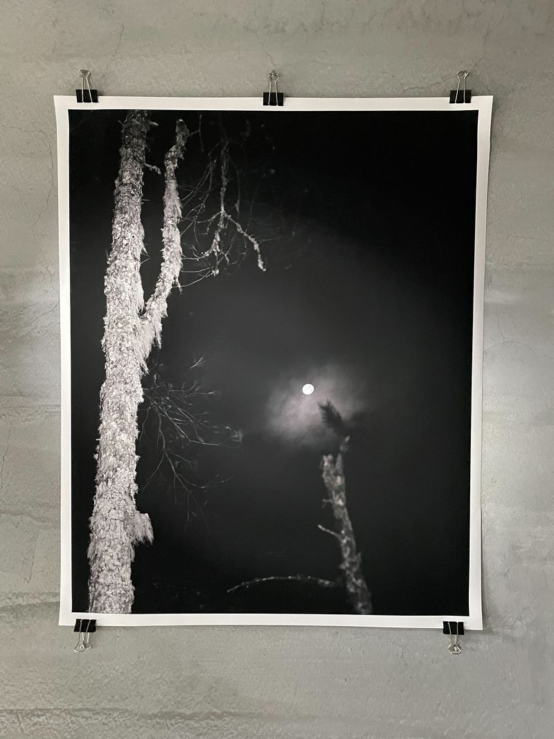 而當我切身地面對這些東亞的松景時,我最終回到了觀看本身。在所知與所見的夾角中,我試圖審視與再次想象觀看這一動作。通過攝影術與鹽印法,我想重新建構這些松景的圖像、與承載這些圖像的肉身,將文化歷史語境與更久遠的自然歷史要素納入其中。以一個來自東亞內部的個體視角,重新渲染這些松景的覆合時空。
