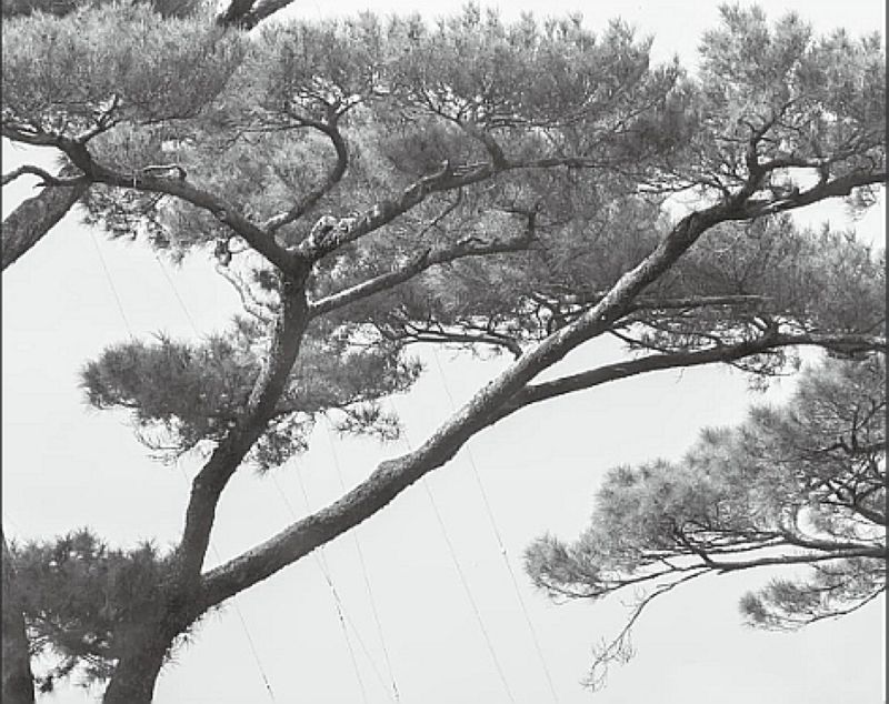 在鄭安東的作品中,具體的地理位置變的次要,而透過攝影術拓印下的這些松樹在形態與質地上的集體特徵和聯繫,則成為了他更為關注的對象。