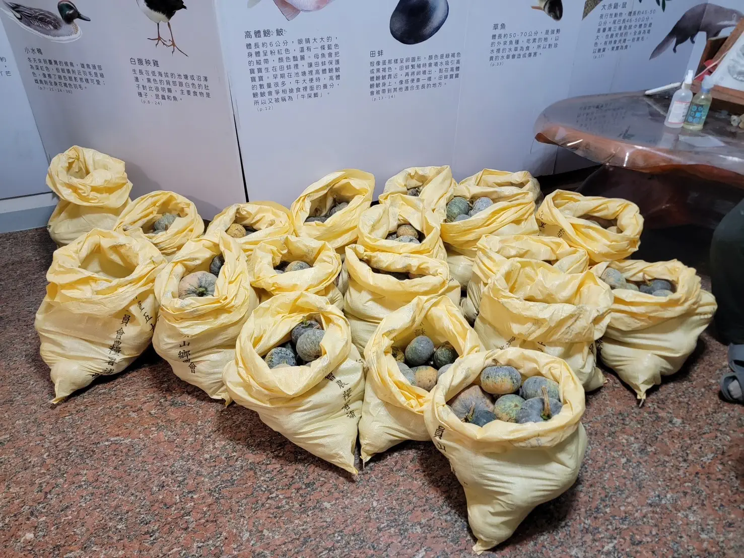 分裝成19袋麻布袋,每袋裝20顆,其中一袋為15顆。