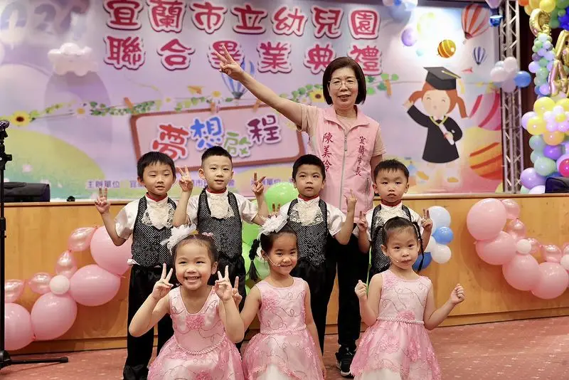 宜蘭市長陳美玲表示,宜蘭市幼十分重視孩子的多元學習與品格教育,用心規劃教育課程,讓孩子快樂學習、健康成長,持續打造親子友善環境。她感謝家長們今日踴躍參與,一同見證孩子成長的重要時刻。歷經三年的幼兒園生活,孩子從學校的沃土汲取養分,業已成長茁壯。祝福每一位畢業生帶著夢想啟程,未來繼續閃耀。