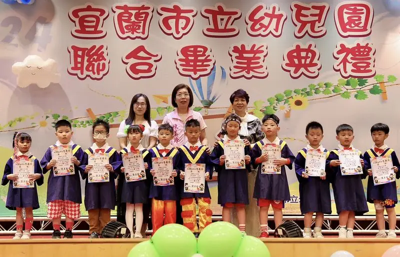 宜蘭市立幼兒園表示,今年畢業典禮別具巧思,透過頒發榮譽獎項,給予孩子肯定與成就感。老師們更精心製作影片,回顧孩子在園所的生活片段及學習記錄,期盼畢業生們帶著三年來的快樂回憶,以及老師們給予的祝福與支持,勇敢地邁入另一個學習階段。加油!