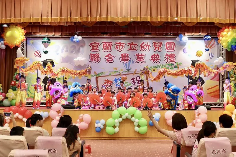 宜蘭市立幼兒園畢業典禮安排了畢業生透過舞蹈表演來呈現特色學習成果,展現孩子的青春活力。今年更仿效「三金頒獎典禮」模式,為每一位畢業生頒發「市幼菁英獎」,肯定孩子在幼兒園的成長與其獨特的專長能力,使其倍感尊榮,期許孩子帶著這份正向、積極的感受,朝自己的夢想前進。最後,畢業生們合唱畢業歌,為市幼生活畫下圓滿的句點,現場氣氛溫馨感人。