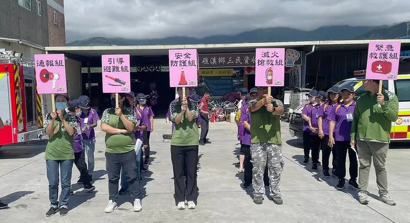 公所今天特別邀請消防局礁溪分隊陳銘基分隊長及礁溪分隊隊員蒞臨現場,藉由打火弟兄的專業知識與經驗給予指導及講評。此次演練的狀況設定為資收小站置物室發生火災,志工們發現後立即啟動自衛消防編組,通報消防局並實施初期滅火及避難引導,消防車及救護車抵達現場,現場指揮官簡單敘述災害狀況後,分開進行救災和救護,經由拉水線灑水滅火後進行火場勘查,確認人員均安全無虞後,解除火災警報。