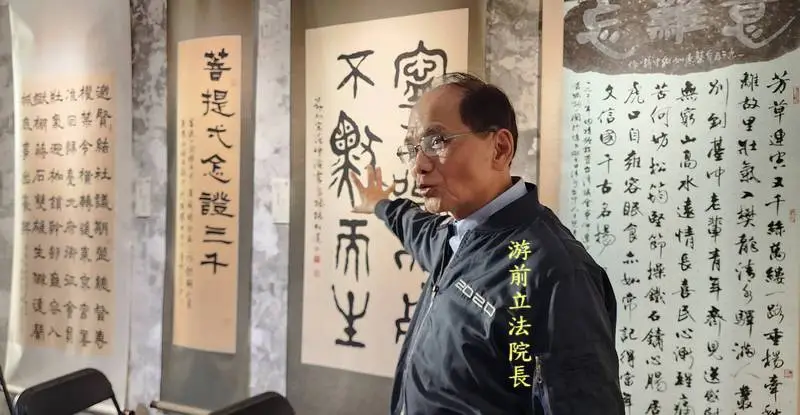 游錫堃說,這次書法展以臺灣歷史為骨架,民主發展為血肉,匯集國內外書法名家之作,首度以「民主發展」為主題的書法展,讓台灣民主與藝術結合,進而深化台灣民主。