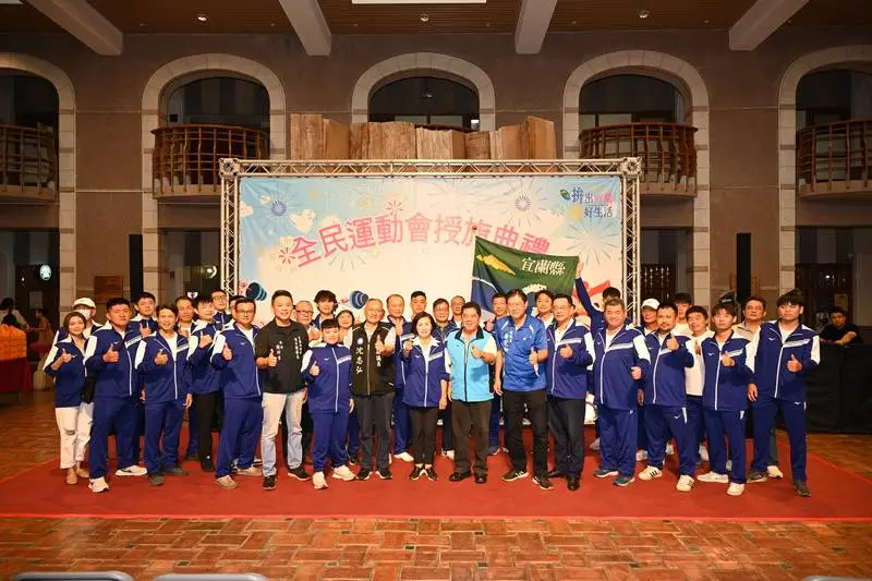 宜蘭縣政府今(21)日在縣民大廳舉辦~「113年全民運動會」授旗典禮,縣長姿妙為宜蘭縣參賽隊職員嘉勉鼓勵,期許選手們在競賽場上全力以赴,角逐各競賽金牌,為己、為縣爭光。