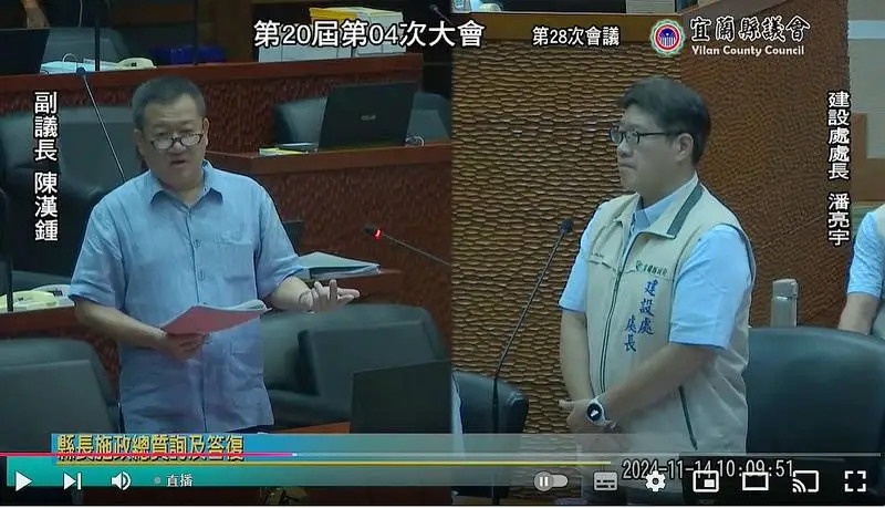 陳副議長,這二項工作不是不能做,而是要不要做,會違法嗎?縣民的財產因為縣府的政策嚴重「縮水」了,還財於民是剛剛好而已,不曉得縣府是在堅持什麼?重點是~縣府又解釋不出有何理由不去做。每次都是說已經在研議了,從你的答詢就可以很清楚你是~以拖延戰術來回應民意。