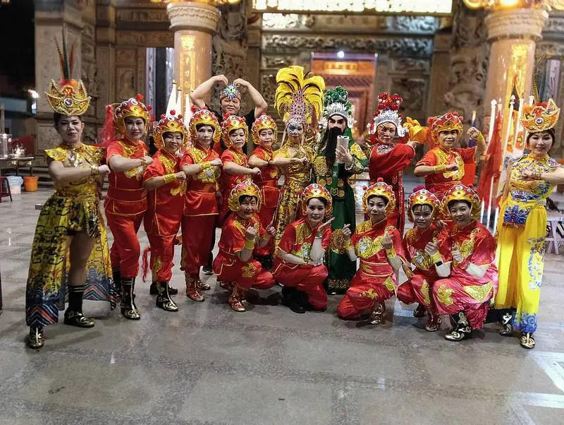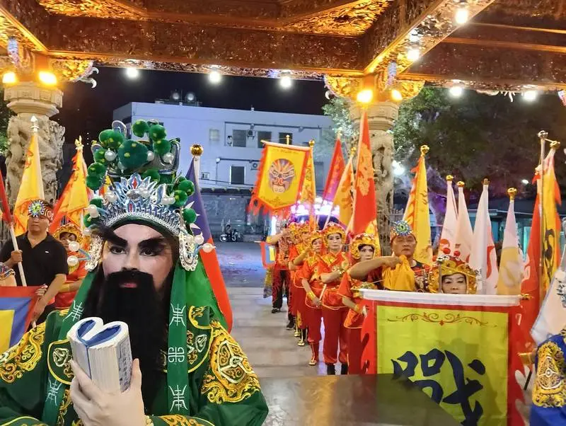 在協天宮進行科儀祭典之後,由南陽義學宗教文化藝術團表演「關帝聖君」的舞碼,隨後所有參加人員一起吃福宴。