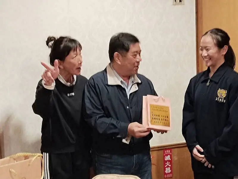 上圖/全中運武術國女組獲得金牌的楊宜佳(右)也贈送禮物,感謝理事長的照顧。