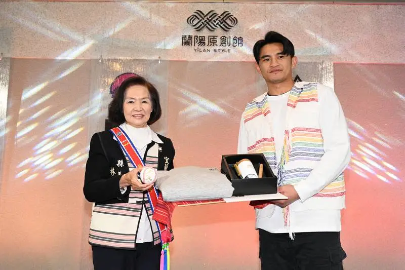 【記者譚杰、趙奇濤/宜蘭報導】 世界冠軍中華棒球隊隊員岳東華今天在宜蘭「走秀」,當起服裝、佩飾的模特兒,吸引了許多觀眾爭相拍照、打卡,岳東華並現場在棒球上簽名,贈送給宜蘭縣長林姿妙,林縣長也回贈禮物給岳東華。