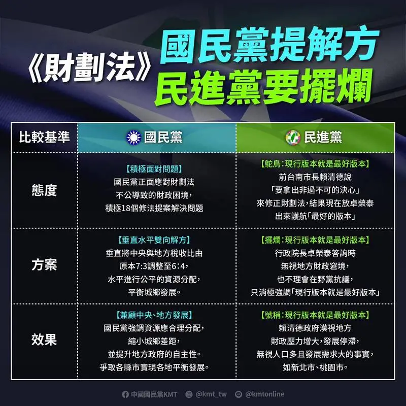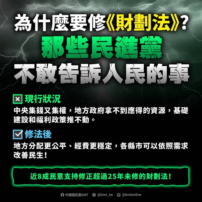 他指出,宜蘭縣財務狀況拮据,能獲得128億元經費挹注,當然是樂觀其成,就能做更多福國利民的地方建設。0寫的再圓還是0,國民黨修財劃法為地方爭取預算,民進黨版本~什麼都沒做!國民黨始終堅持站在人民立場,為地方政府和基層民眾爭取應得的資源。然而,民進黨不僅沒有提出任何具體版本,還冷嘲熱諷,以各種理由瞎扯財劃法修正,甚至散播「修法毀滅國家」等恐嚇言論,意圖混淆視聽。