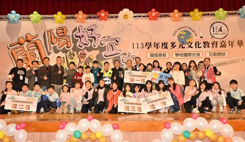 「宜蘭縣113學年度多元文化教育嘉年華-『蘭陽好宜家』」活動,今(4)日上午在宜蘭運動公園體育館舉辦,今年除了閩南語、客語、原住民族語及新住民語文四大族群語言外,又加入了英語及學校國際交流的特色攤位,代理縣長林茂盛到場頒獎給本土語教學成果競賽的獲獎學校,獲獎的團隊也同時在現場進行精彩的表演,展現了宜蘭縣在多元文化教育方面的努力與成就。