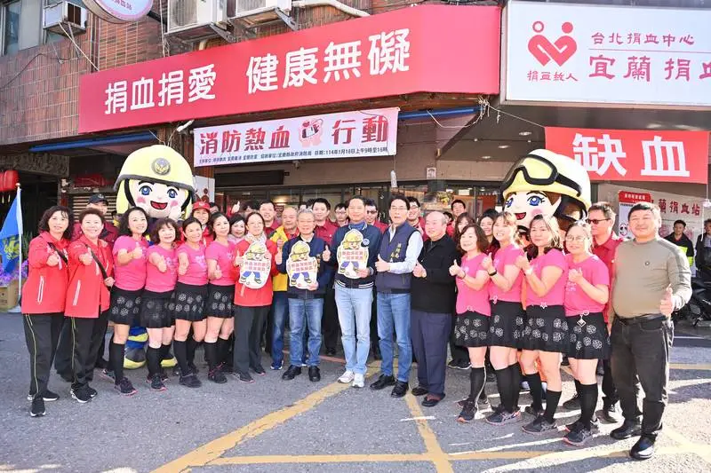 農曆年節將至,宜蘭縣政府消防局今(18)日上午9時至下午4時在宜蘭捐血站辦理「消防熱血行動」捐血活動,鼓勵消防、義消人員及消防替代役男「挽袖捐血」,展現消防熱忱,關懷社會!