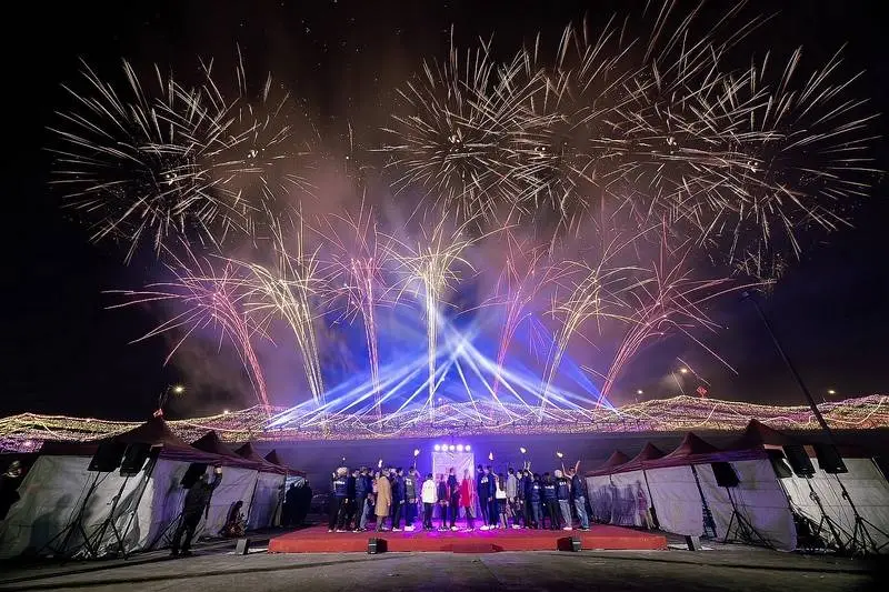 為搭配宜蘭橋「金蛇光廊」點燈啟動儀式所量身打造的「金蛇舞春」煙火表演,以金蛇舞姿為創意靈感,煙火爆發出流動的蛇形火花,點綴夜空,象徵新年旺盛的生命力與幸福。