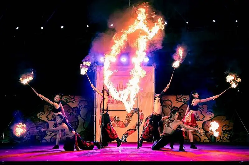 「金蛇舞春」宜蘭市春節街景點燈儀式17日晚上七點,在宜蘭河濱公園隆重登場,法國達人秀總決賽亞軍蔡宏毅領軍之「即將成真火舞團」,以金蛇年為主題精心編創「火蛇迎春、護宜蘭」火焰舞劇,演繹長達24公尺火蛇燦動,詮釋24節慶迎春火浪,為宜蘭市這座美麗的古城帶來全年的福氣滿盈。