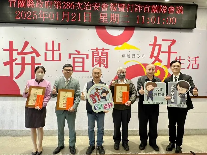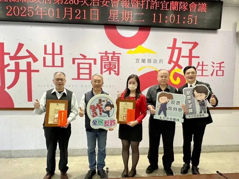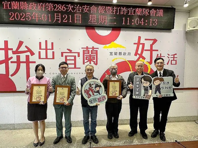 宜蘭縣政府為感謝金融機構積極攔阻詐騙案件,代理縣長林茂盛今21日藉由治安會報,表揚機警行員之義行,並頒發感謝狀予有功人員,期望透過公開表揚方式,強化全民打擊詐欺犯罪信心,暢通警民良好之通報機制。