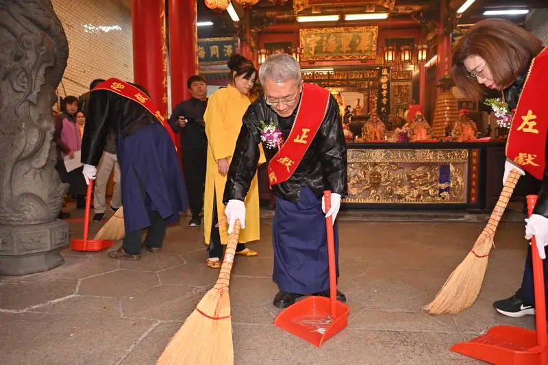 宜蘭縣政府今(22)日在宜蘭市昭應宮舉行~2025歡樂宜蘭年「送神、·筅黗、祭儀、暨平安粥分享」活動。活動以傳統古禮進行,旨在傳遞除舊迎新的美好意涵,喚起縣民對傳統年節的記憶與情感,並呼籲家家戶戶開始大掃除,為迎接即將到來的蛇年做好準備。