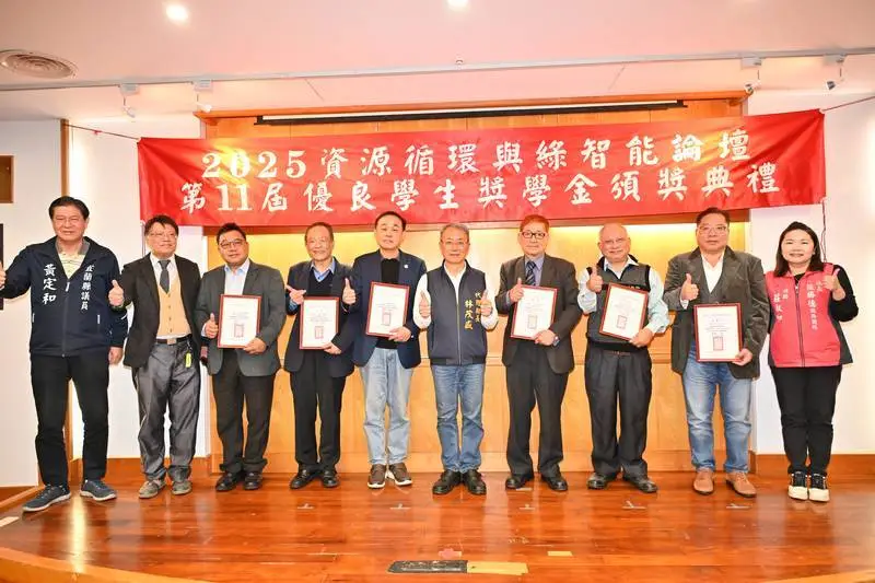 資源循環與綠智能論壇長期與宜蘭縣政府合辦,今(114)年邁入第十一屆辦理「114年宜蘭縣優良學生獎學金頒發典禮」,獲獎的大學生是由全國各大專院校學生提出申請,並經過國內頂尖教授評審,篩選出符合條件需要扶助的同學,本屆另提供宜蘭縣內高中及國中小學優秀學生,共頒發大學生4位、高中生6位、國中小學生21位,一共31位學生,除失能學生外皆出席參加。