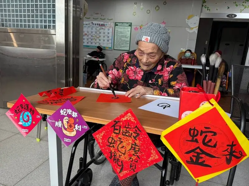 年節的腳步聲已經到了,長照住宿機構全「家」總動員,長輩忙著寫春聯,趁著好天氣工作人員也將寢具、輪椅清洗曬太陽。