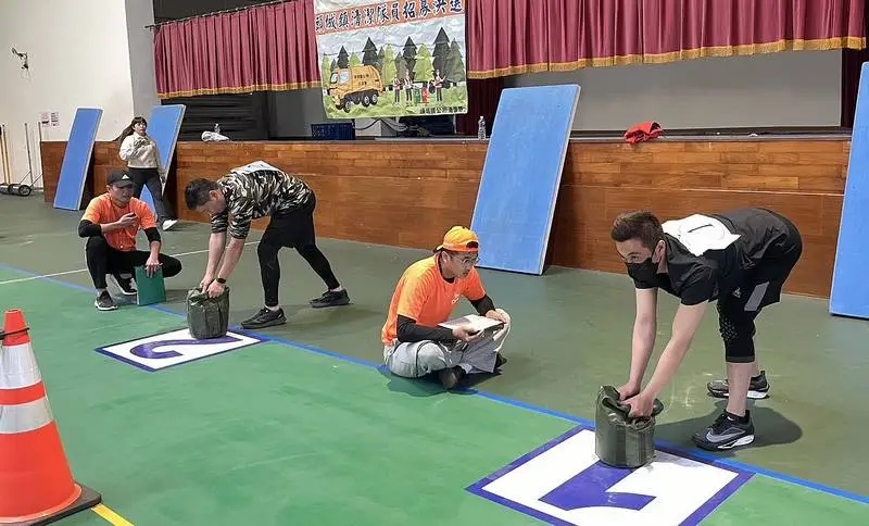 這次招考吸引八位民眾報名,經過第一階段資格審查,全數晉級第二階段體能測驗。測驗項目為負重沙包40公尺折返跑競速,男性負重12公斤、女性6公斤。參賽者分初賽、決賽進行,展現體能實力。