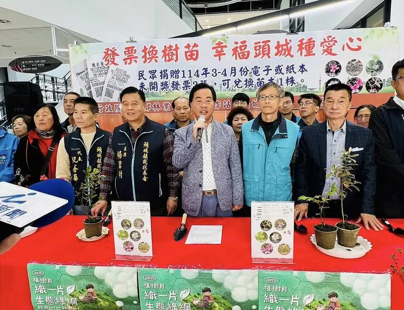 頭城鎮公所響應植樹月,今(20)日與林業署宜蘭工作站於公所前廣場舉辦贈苗活動,提供450株台灣原生樹苗,邀請民眾捐發票換樹苗,共同綠化家園,散播愛心。